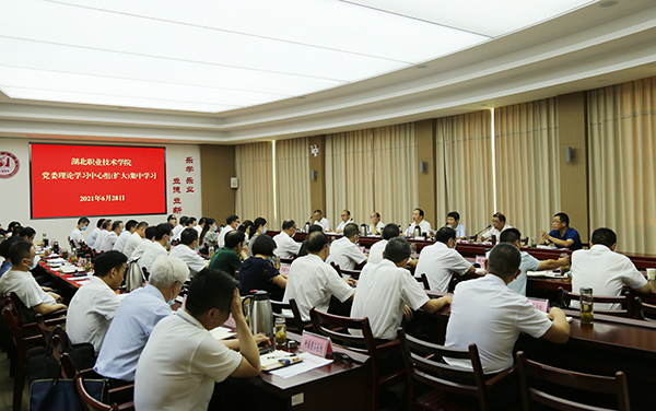 会上,党委书记郭国文传达省委书记应勇同志在省委十一届九次全体会议上的讲话精神及湖北省委巡视组第十一组组长李平在巡视湖北职业技术学院党委工作动员大会上的讲话精神;党委副书记、校长朱虹领学了习近平总书记在青海考察的重要讲话精神;党委委员、纪委书记高英雄领学了《中共中央关于加强对“一把手”和领导班子监督的意见》;党委委员、副校长刘发兴领学了《法治中国建设规划(2020—2025年)》《法治湖北建设规划(2020—2025)》《中央宣传部、司法部关于开展法治宣传教育的第八个五年规划(2021—2025年)》等文件精神;党委委员、副校长梅重领学了《中华人民共和国保守国家秘密法》等有关文件精神。