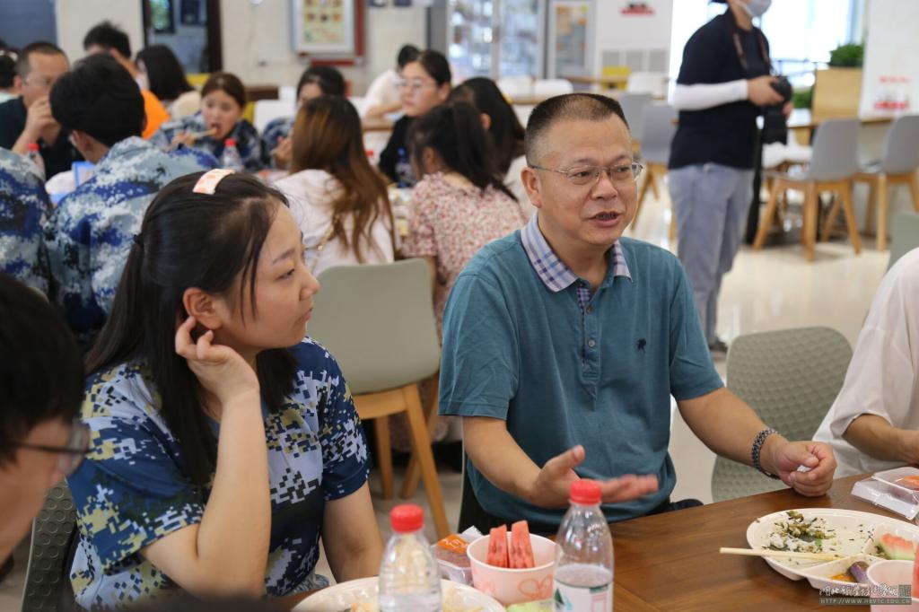 12时整,大家齐聚一堂,同学们放下了平日的拘谨,整个餐会氛围十分轻松融洽。郭书记在与同学们交流时聊起了他的大学生活,希望同学们能够加强体育锻炼,为自己打下坚实的身体基础。同时,呼吁大家要刻苦学习,“当今社会正需要研究型人才和技能型人才,两者缺一不可。希望同学们学业有成,将来为学校增光添彩。”在与学生干部王梓鸣的对话中,郭书记嘱咐道“作为学生干部,成绩不能落下,既要把工作做好,也要把学习学好。”