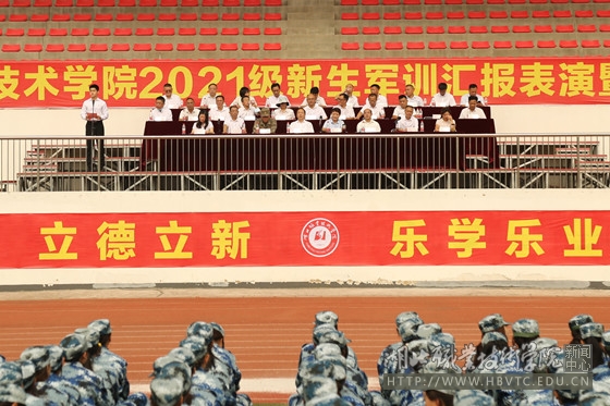 (本网通讯员:冷玖玲 刘金锐)9月24日上午8:30,我校2021级新生军训汇报表演暨开学典礼在南校区田径场隆重举行。全体在校领导、承训部队领导出席会议,各职能部门负责人及各二级学院负责人、教师代表、军训教官及2021级全体新生参加大会。副校长杨立明主持会议。